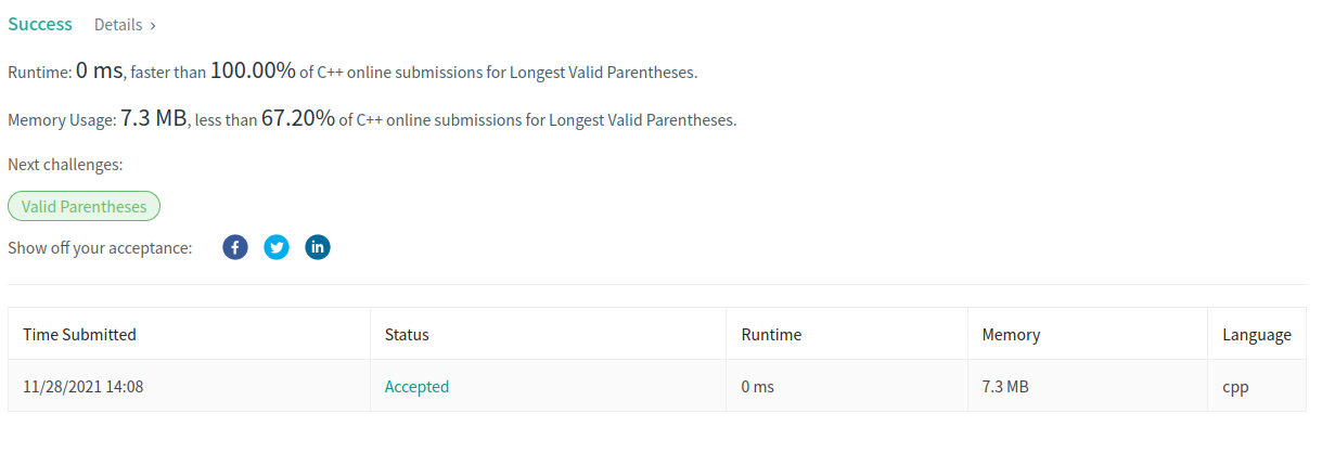 Given a string containing just the characters ‘(‘ and ‘)’, find the length of the longest valid (well-formed) parentheses substring.