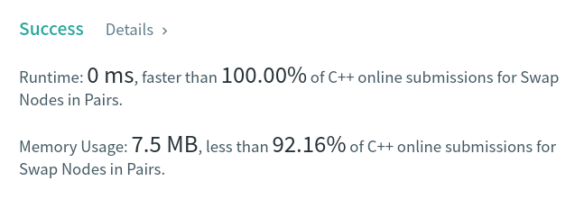 Given a linked list, swap every two adjacent nodes and return its head. You must solve the problem without modifying the values in the list’s nodes (i.e., only nodes themselves may be changed.)